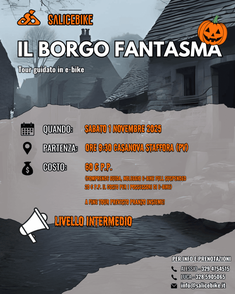 In questo tour di livello intermedio per appassionati di MTB uniremo la storia e originalità del nostro territorio ad una serie di sentieri appassionanti e veloci! Che tu sia un rider più esperto oppure un appassionato che vuole affinare un po’ la propria tecnica, questo è il tour che fa per te 😉 la nostra abile guida Mike Penna saprà farci vivere un Halloween spaventoso e divertente al tempo stesso!